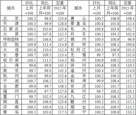 2018年1月70个大中城市新建商品住宅销售价格指数